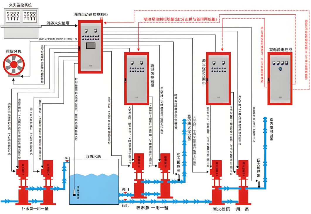 數(shù)字智能巡檢柜可以起到防止消防水泵銹蝕、受潮、水泵動(dòng)作不正常等故障的作用,確實(shí)做到"養(yǎng)兵千日,用兵一時(shí)"的目的。消防水泵必須加裝自動(dòng)巡檢裝置。巡檢為低頻巡檢,巡檢時(shí)電機(jī)轉(zhuǎn)速為300轉(zhuǎn)/分,水系統(tǒng)不增壓、無啟動(dòng)電流,極大的延長了設(shè)備的使用壽命。