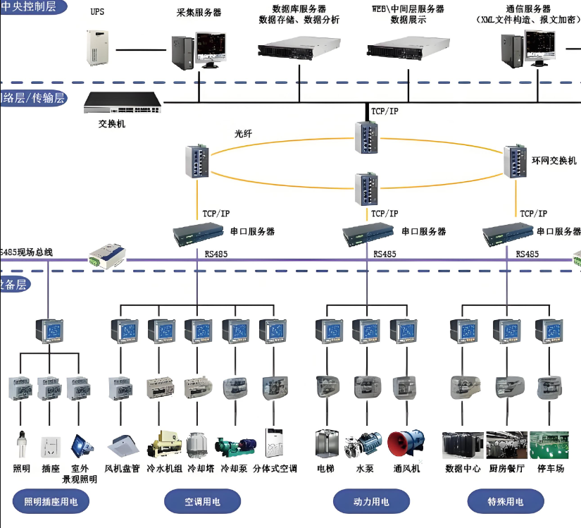 能耗管理系統(tǒng)是一種基于物聯(lián)網(wǎng)和大數(shù)據(jù)技術(shù)的創(chuàng)新管理系統(tǒng),旨在通過實(shí)時監(jiān)測和智能分析,實(shí)現(xiàn)對建筑物能耗的精細(xì)化管理和優(yōu)化。下面將介紹智慧能耗管理系統(tǒng)的系統(tǒng)架構(gòu)組成。