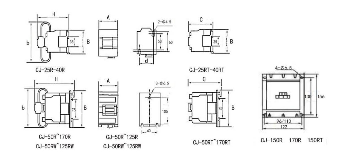 ·CJ-18R~CJ-40R提供兩對輔觸頭,可選1開1閉代號11型 或2開代號20型,默認11型。 ·CJ-50R~CJ-125R提供三對輔觸頭,全部為2開1閉代號21型(可省略)。 ·CJ-150R 170R提供一對常開輔助觸頭。? ·RT型產(chǎn)品沒有限流機構(gòu)和限流阻抗,必須工作在串接電抗器的回路中。 ·25kvar~60kvar 可選配外引接線式,下單清注明。 |
