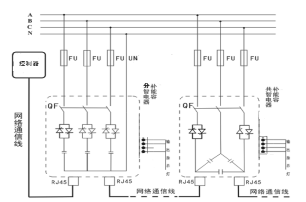 智能組網(wǎng):485通訊接口,內(nèi)置 MODBUS-RTU協(xié)議;可實現(xiàn)遠程監(jiān)控。產(chǎn)品可多臺聯(lián)機使用時,自動產(chǎn)生主機從機,構成無功自動控制系統(tǒng)。