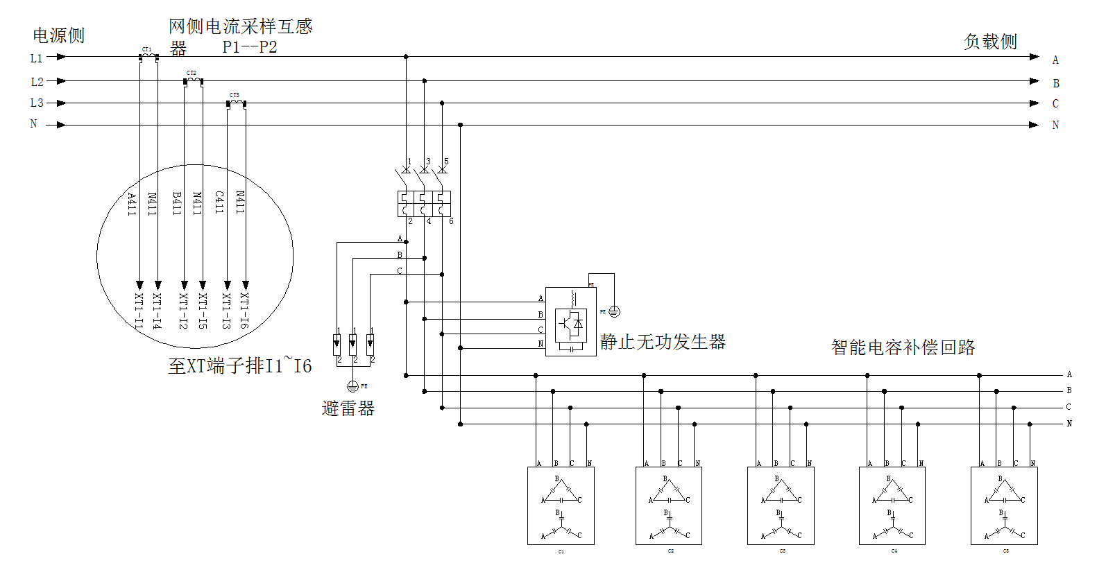 線路調(diào)節(jié):能夠解決系統(tǒng)三相負(fù)荷不平衡的問題,不僅不產(chǎn)生諧波,而且能在補償無功功率的同時動態(tài)的補償諧波;