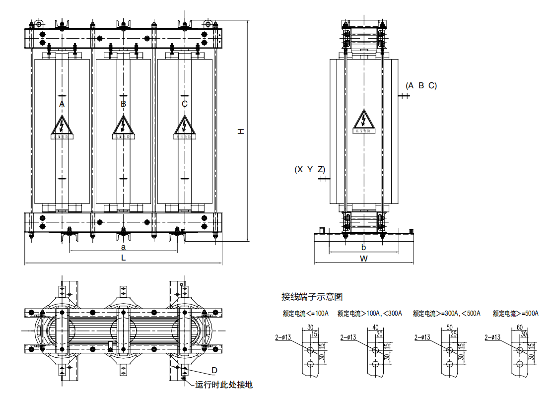 體積結(jié)構(gòu);高壓串聯(lián)電抗器三相鐵芯成黃金分割比例,結(jié)構(gòu)合理,占地體積小,維護(hù)更換方便,頂部裝有吊環(huán),便于柜內(nèi)安裝及現(xiàn)場施工。