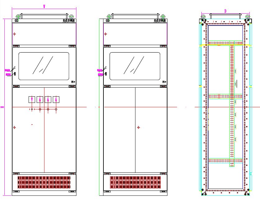 GGD(GF)系列光伏并網(wǎng)柜作為光伏電站的總出口存在于光伏系統(tǒng)中,是連接光伏電站和電網(wǎng)的配電裝置,其主要作用是作為光伏發(fā)電系統(tǒng)與電網(wǎng)的分界點(diǎn)。對(duì)于低壓并網(wǎng)的光伏電站,光伏并網(wǎng)柜中還可以加裝計(jì)量、保護(hù)等功能器件。主要由防孤島保護(hù)裝置,并網(wǎng)開關(guān)、防雷器、溫濕度控制器、電能計(jì)量裝置和柜體附件等相關(guān)硬件組成。光伏并網(wǎng)柜主要用于110KV、35KV的集中式光伏并網(wǎng)接入系統(tǒng)和10KV、380V分布式光伏接入并網(wǎng)系統(tǒng)。