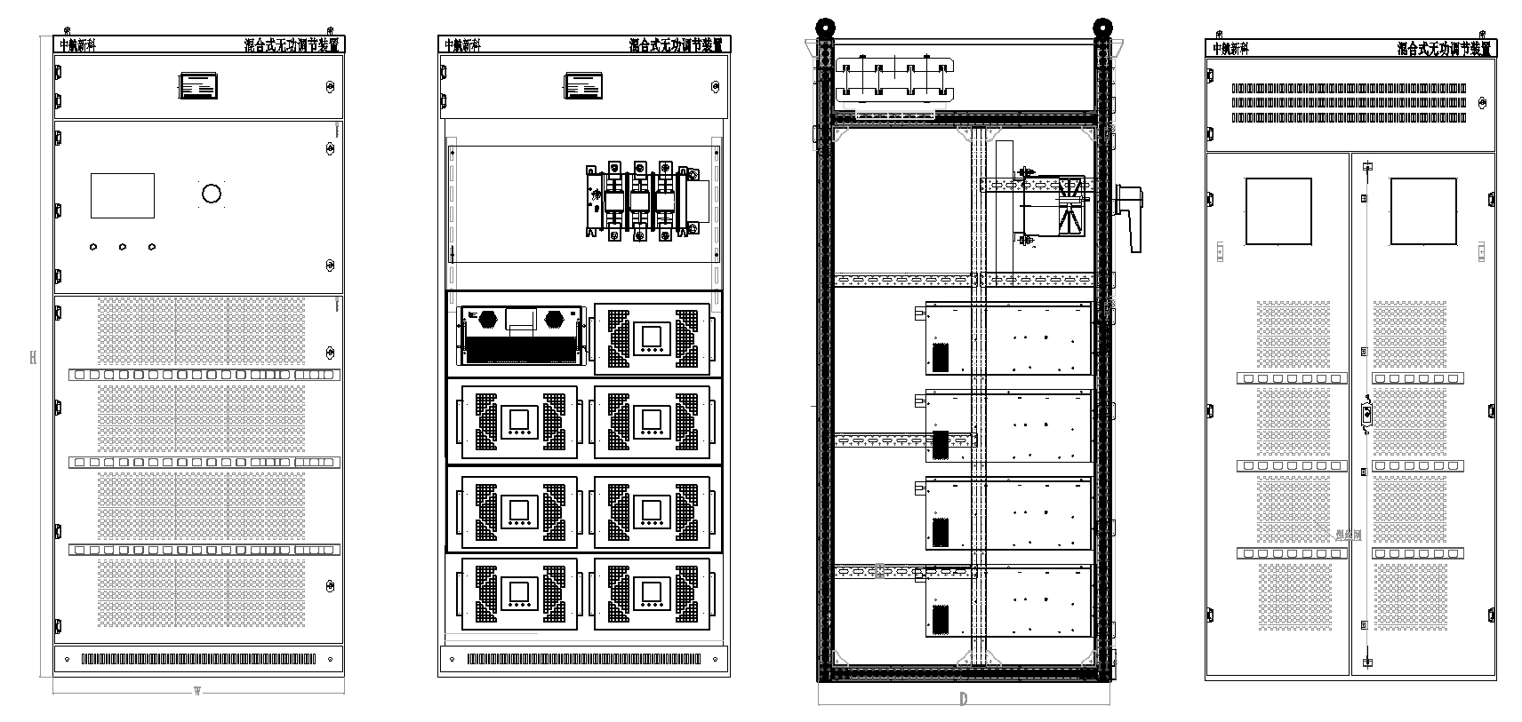 模塊設(shè)計;混合式無功補償裝置采用模塊化組裝工藝,結(jié)構(gòu)簡單合理,模塊組裝互換通用性強,可實現(xiàn)多種補償方案組合的標(biāo)準(zhǔn)化生產(chǎn)。